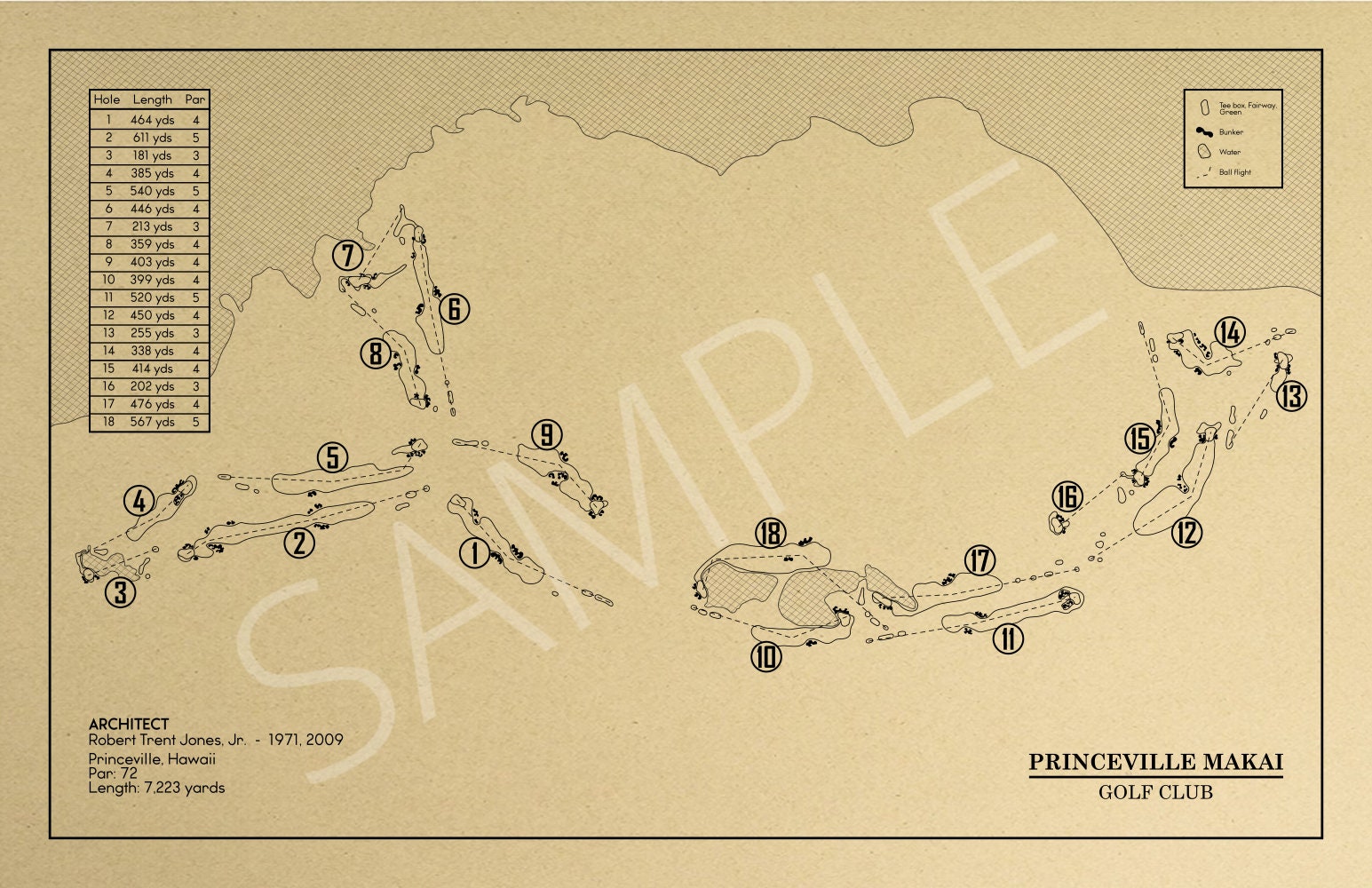 Princeville Makai Golf Club Outline (Print) โ GolfBlueprints