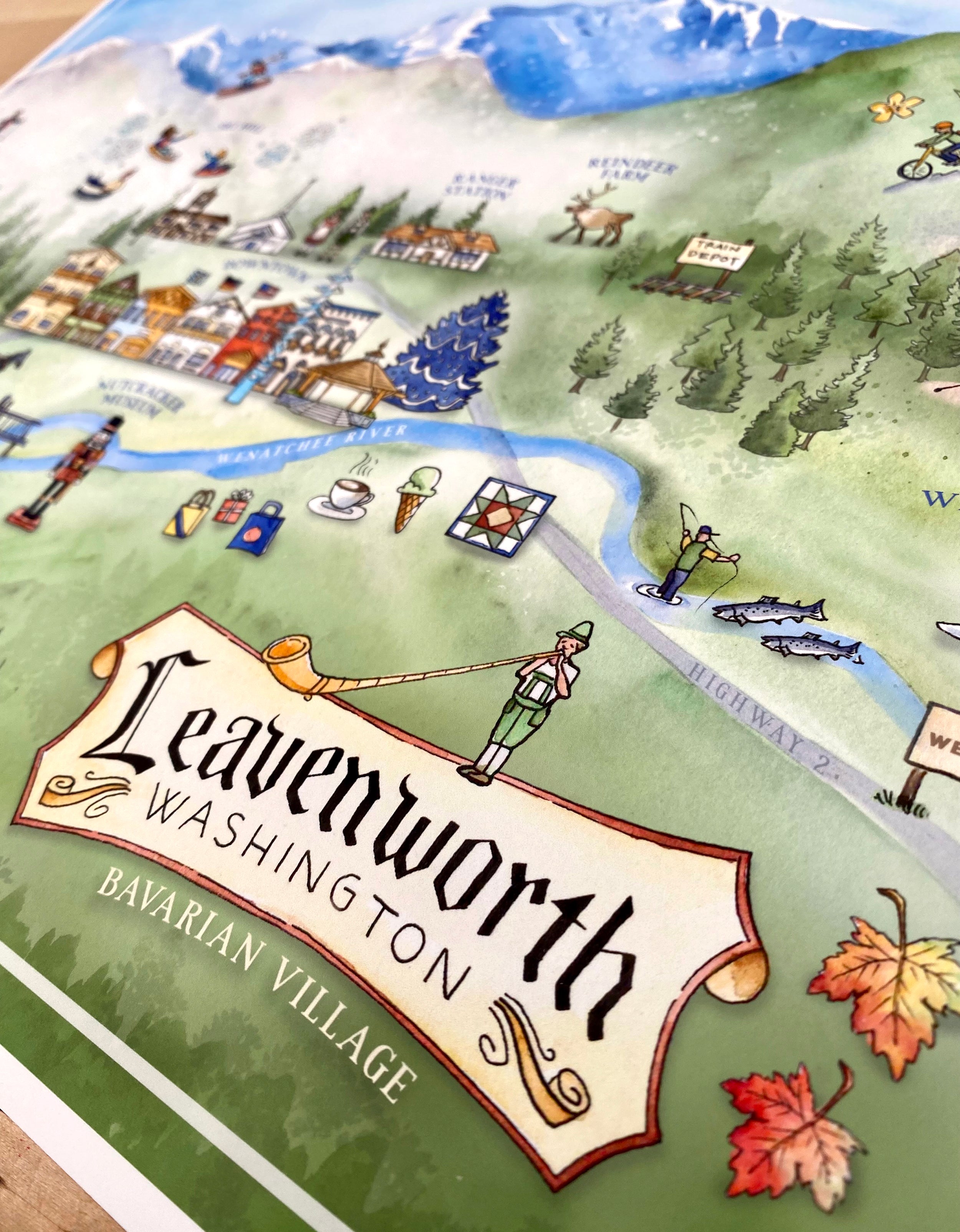 Leavenworth WA Bavarian Mountains Map Art Print – Elizabeth Person