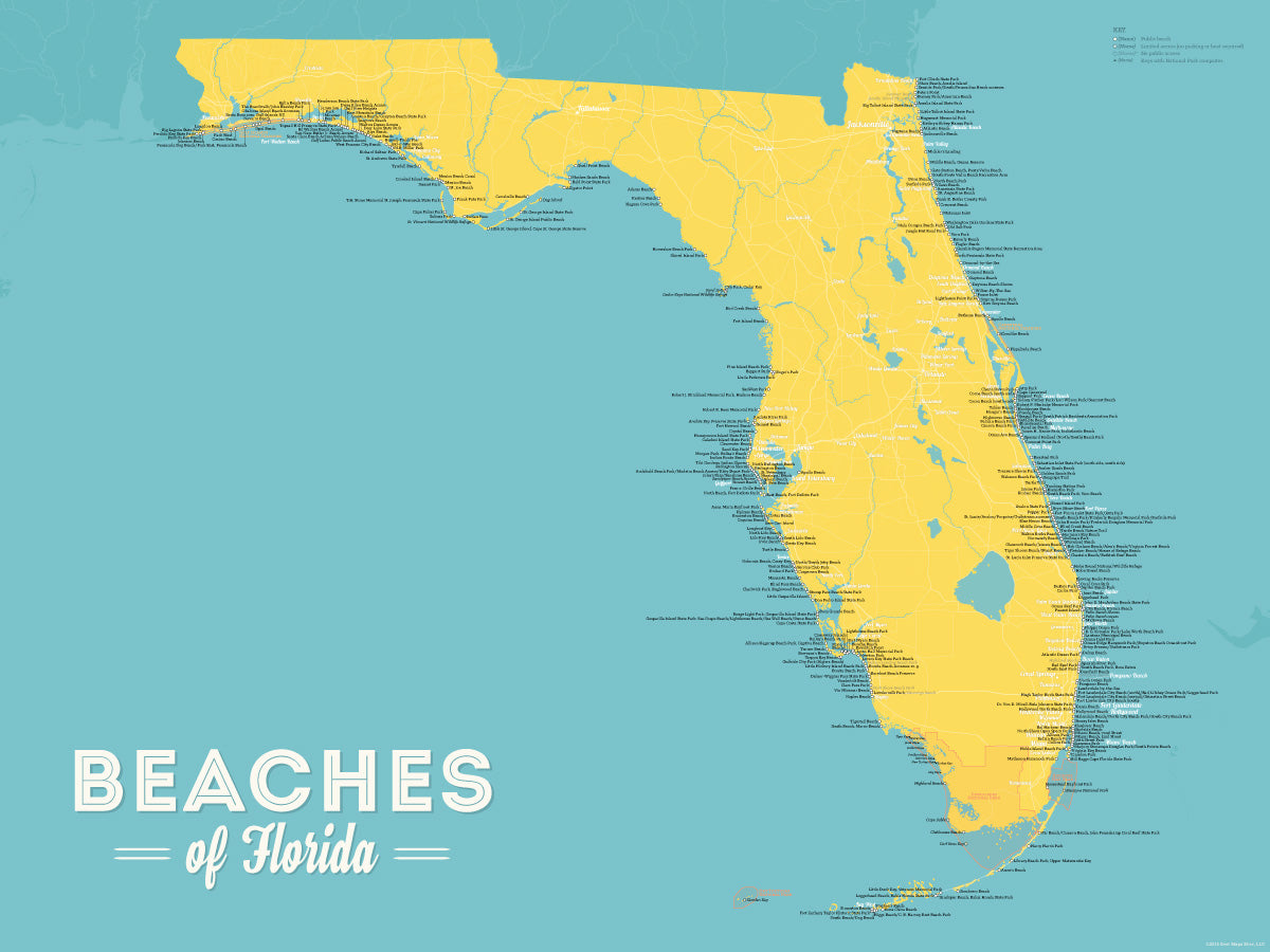Florida Beaches Map 18×24 Poster Best Maps Ever